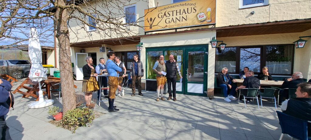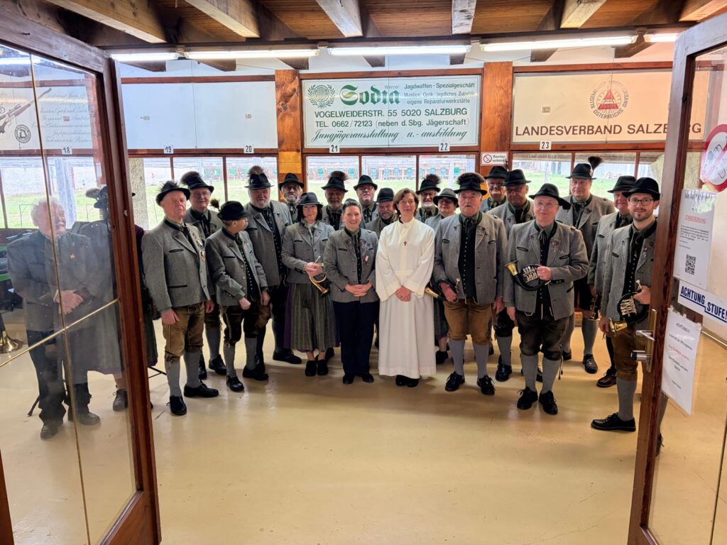 Auch heuer trafen sich am Ostermontag etliche Schützinnen und Schützen zur traditionellen Ostermesse am Landeshauptschießstand. Bereits zum 10. Mal hielt für uns Michaela Kobinia die Messe ab. Mit Unterstützung durch den Salzburger Jägerchor und den Jagdhornbläsern unter der Leitung von Mag. Eveline Edlinger war es eine gelungene Veranstaltung. Im Anschluss gab es bei geweihtem Wein und Brioche noch reichlich Gelegenheit sich auszutauschen. Ab 12 Uhr waren dann die Schützen gefordert, um den Sieger des ebenfalls traditionellen 100er-Schießens zu ermitteln. 23 Schützen traten zum Wettstreit an. Auch wenn sie sich noch so viel Mühe gaben, der 100er fiel in diesem Jahr nicht. Sieger mit gleich drei 99er Ergebnissen war Kenneth Lindenfelser, dicht gefolgt von Bernd Wimmler mit zwei 99ern und einer 96. Es reihten sich dann Armin Köll, Lothar Bauer und Patrick Hermann-Ott in die Liste der Preisträger ein. Ein Dank geht auch an die Familie Gann, die uns den ganzen Tag wieder hervorragend verpflegt hat. Die letzten Schützen traten am frühen Abend die Heimreise an. Wir freuen uns, wenn im nächsten Jahr wieder mehr Schützinnen und Schützen am Ostermontag den Weg zum Schießstand finden und an Schützenmesse und Wettkampf teilnehmen. Am besten, den Termin 29.03.2027 gleich einmal vormerken. Die Ergebnisliste findet Ihr wie immer auf der Webseite unter Schießsport/Ergebnisse.